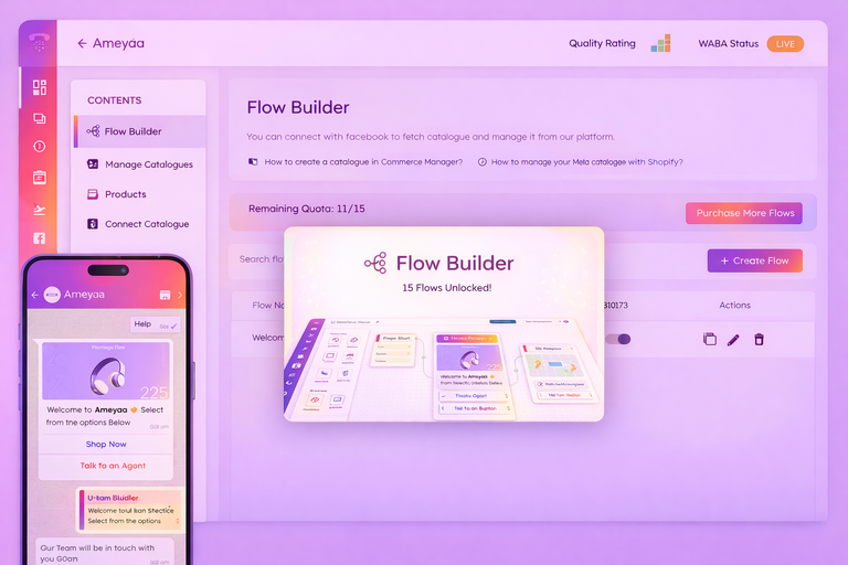 Build Multiple dynamic WhatsApp Chatbots easily with a drag-and-drop Interface.