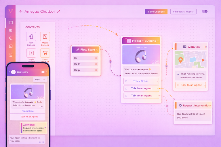 Effortlessly automate 80% of common user queries with WhatsApp chatbot.