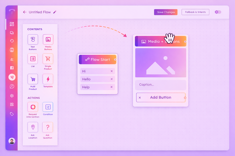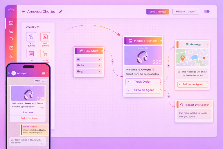 Build Multiple dynamic WhatsApp Chatbots easily with a drag-and-drop Interface.